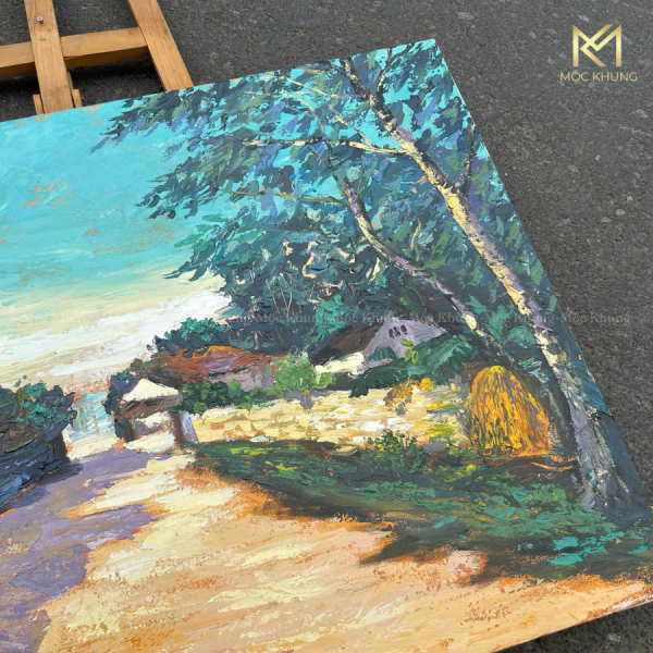 Tranh sơn dầu con đường làng quê là bức tranh được vẽ lại cảnh con đường nhỏ nằm giữa hai bên bờ cây để đi vào làng. Cùng với hình ảnh đường làng quê nhỏ là cánh đồng rộng lớn bao la trải dài tít tắp. Bức tranh vừa mang vẻ mộc mạc bình dị đẹp chân phương, lại vừa giúp căn phòng như rộng rãi hơn, thoáng đãng hơn. Bức tranh này được các họa sỹ vẽ với khổ tranh nhỏ. Nếu thích quý vị hoàn toàn có thể đặt vẽ theo mẫu này khổ tranh to hơn đều được. Tranh được vẽ hoàn toàn bằng sơn dầu do chính họa sỹ Việt Nam vẽ nên quý vị hoàn toàn yên tâm về chất lượng.