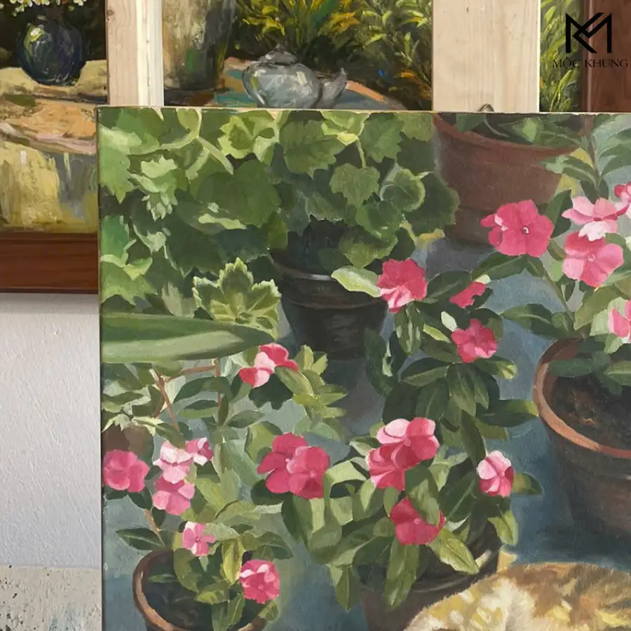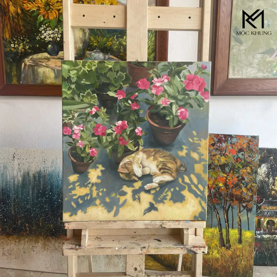 Tranh sơn dầu thủ công, không in máy.