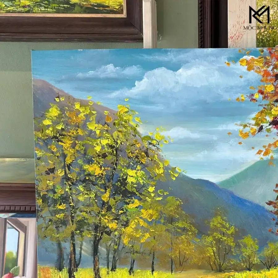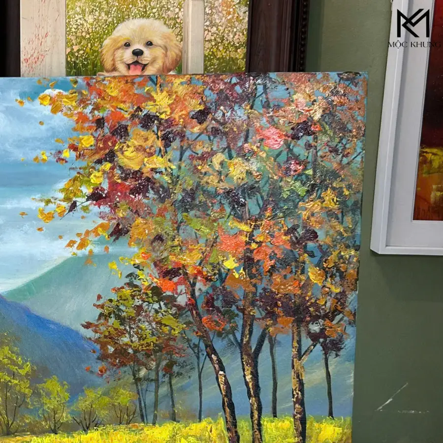- Chất liệu tranh: Vải canvas chuyên dụng phủ sơn dầu cao cấp, tạo lớp màu dày, bút pháp rõ nét, hiệu ứng ánh sáng tự nhiên.